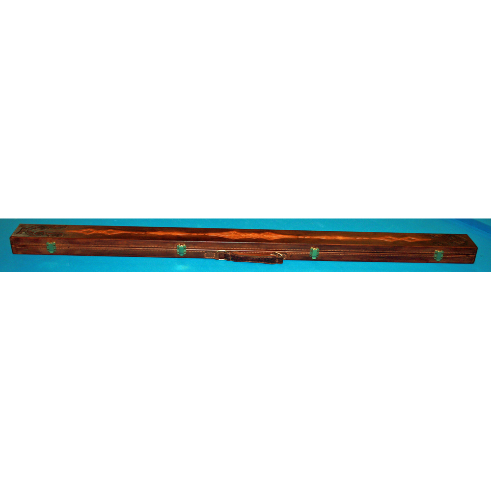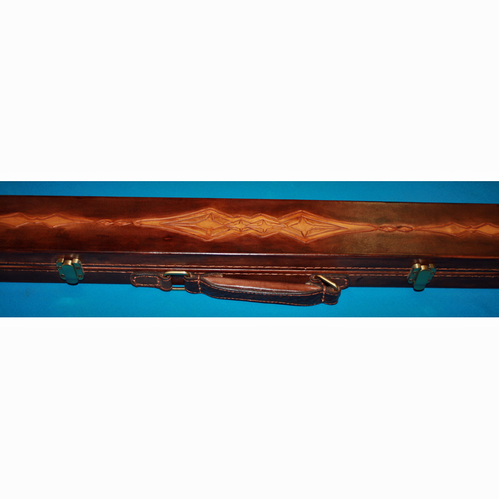 ein wunderschöner rahmengenähter Snookerkoffer mit atemberaubenden Punzierarbeiten, Das innenleben des Koffers ist aus wiechem Plüsch und hat vier Verschlüsse.